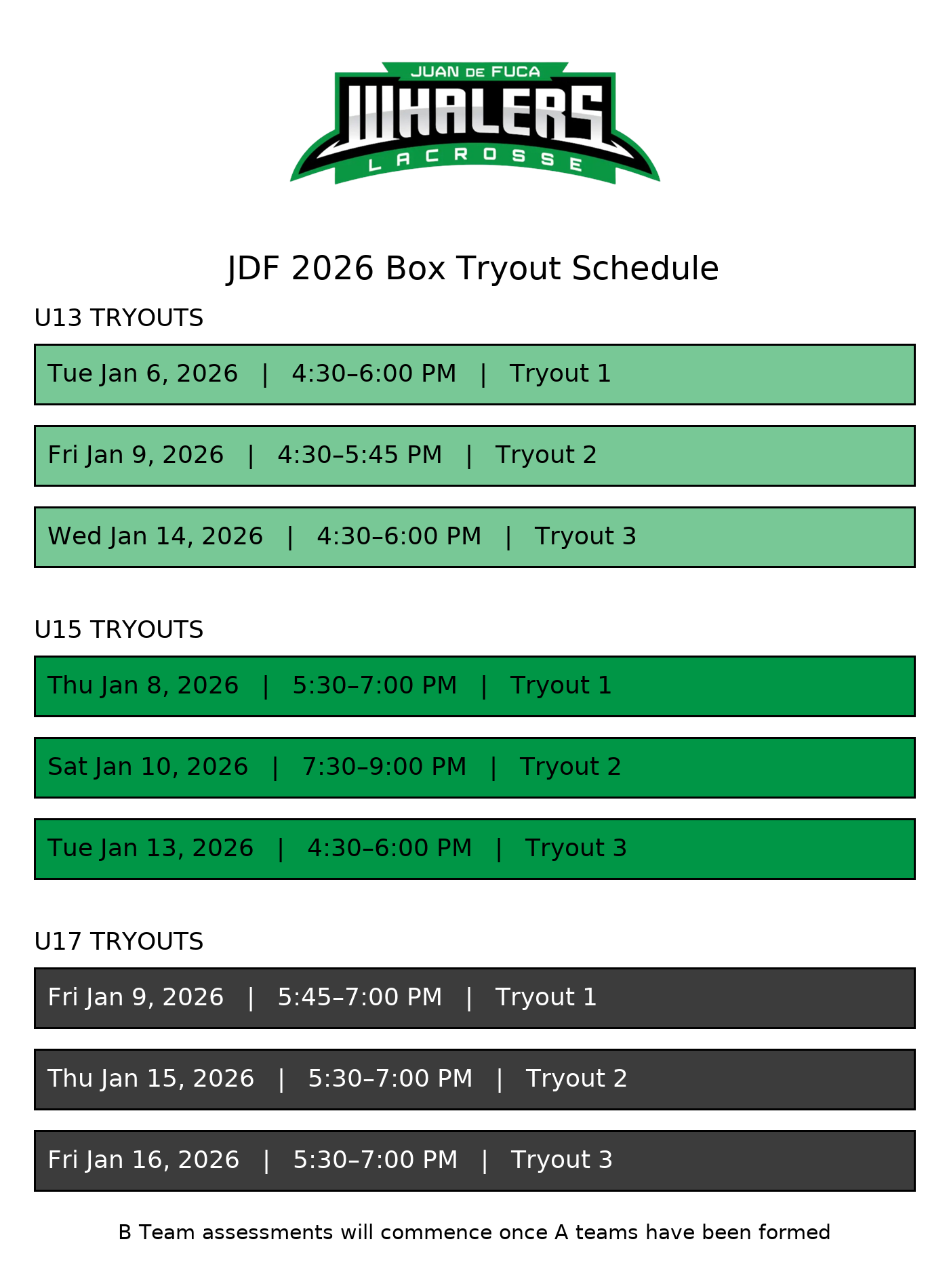 Subject to change - please check often to ensure you have the right dates for your division