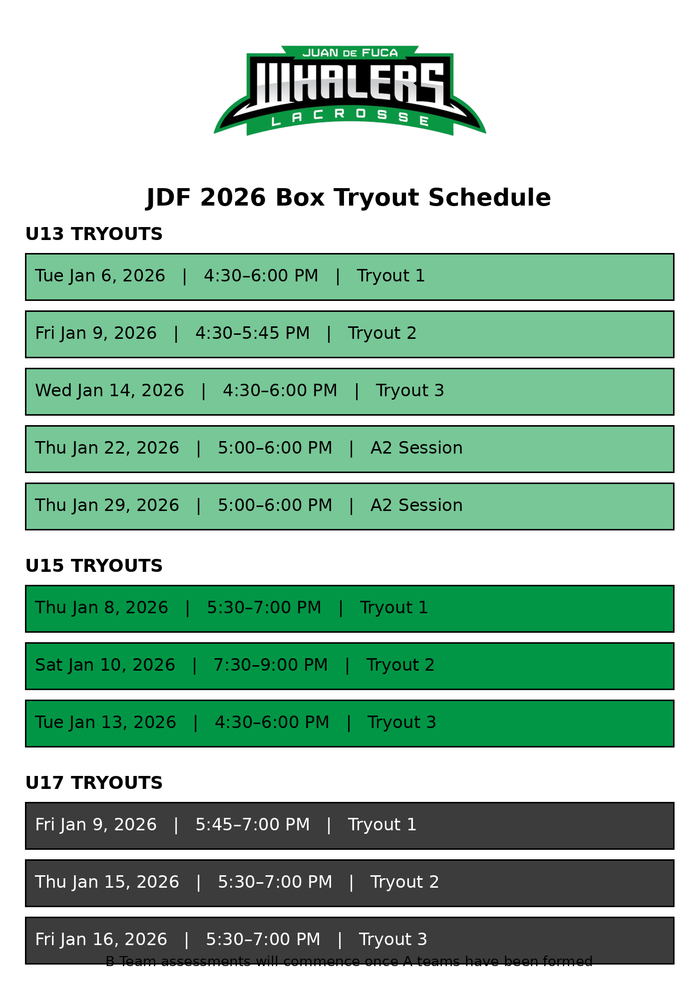 Subject to change - please check often to ensure you have the right dates for your divisionAll sessions will take place at Eagle Ridge Community Centre.